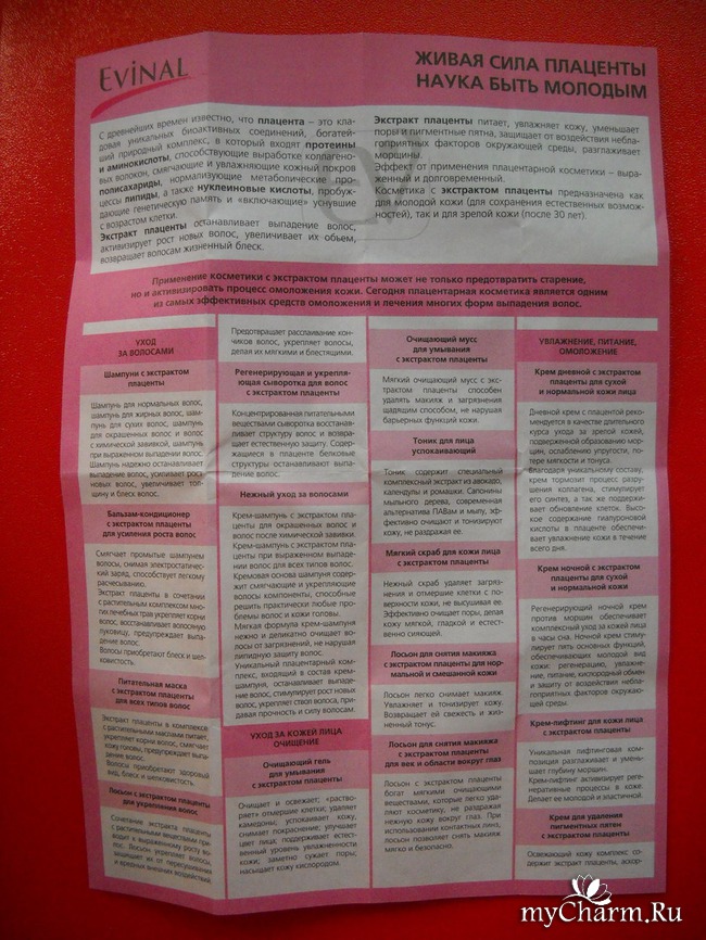 Есть внутри коробочки и познавательная информационная листовка, в которой производитель не поленился в красках расписать полезные свойства плаценты.