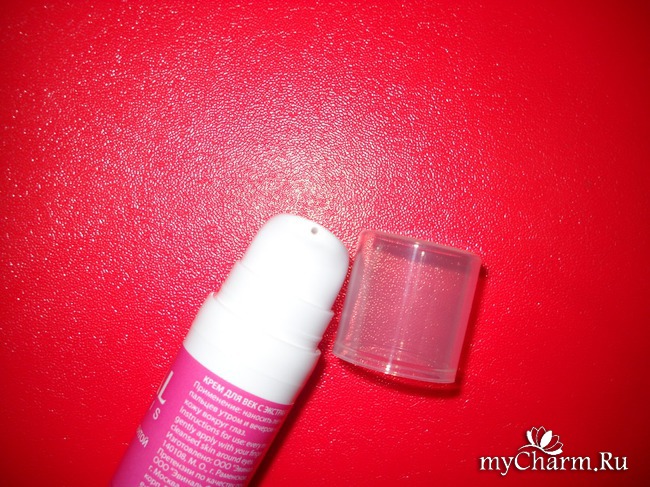 А сам крем, хоть и достаточно густой, может похвастаться удивительно легкой текстурой и безумно приятным запахом! Что касается цвета, то он мало чем отличается от цвета остальных предназначенных для ухода за кожей вокруг глаз собратьев – он такой же молочно-белый.