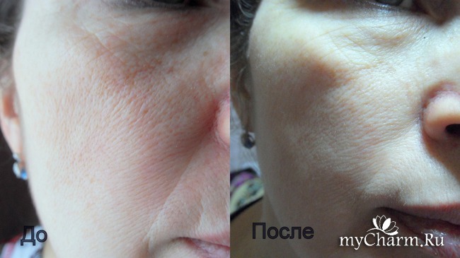 На этом фото, мне кажется, тоже можно заметить разницу: носогубная складочка стала менее заметной, а кожа немного подтянулась.