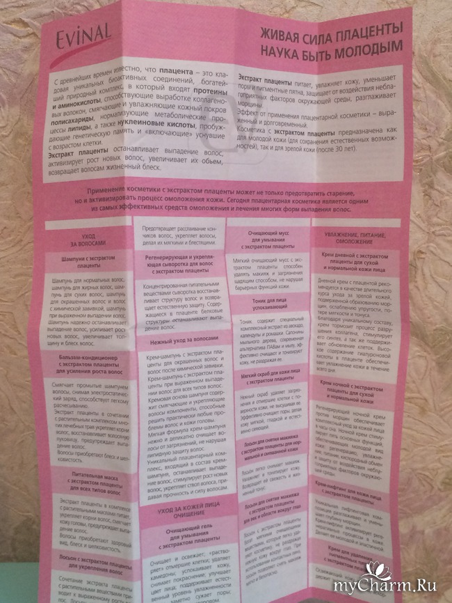 В связи с этим, ко мне в руки попадает средство, производитель которого доселе мне не был знаком. Познакомлю вас с этим брендом - EVINAL paris. Данная фирма создает свою косметику на основе плаценты. Изначально, все производство было отечественным и имело название "Эвиналь". Но в 2010 году, эта фирма объединилась с французами «Green Pharma S.A.S». На сегодняшний день это международная компания «Evinal France».