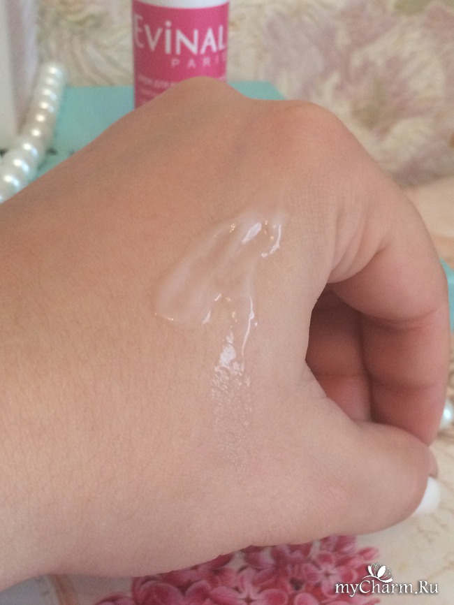 Крем по консистенции не густой, но и не жидкий. Мне напоминает скорее гель, а не крем, потому как по своей текстуре такой легкий, что когда наносишь на кожу, еле ощущаешь его. Аромат очень нежный и приятный. Какой-то конкретный аромат не выделишь. По цвету средство прозрачно-белое.