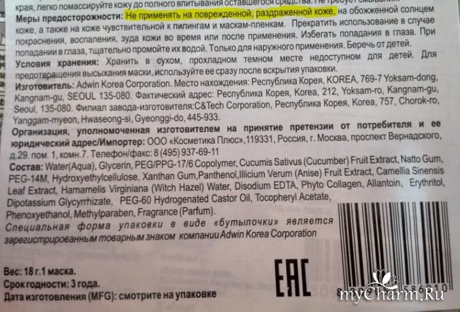 Способ применения маски (рекомендую перед применением прочитать внимательно меры предосторожности).