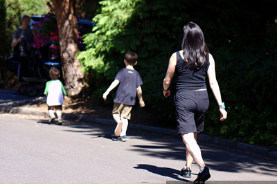 Каждый вечер мы бегали до сосновой рощи, которая находится примерно в километре от моего дома. Сначала мы просто бежали туда и обратно, не меняя темпа с пятиминутным отдыхом у рощи. Через две недели ежедневных пробежек, темп стали менять, то медленно (чуть ли не спортивной ходьбой), то быстро (трусцой). Систематическая измена темпа способствует более активному сжиганию жиров.