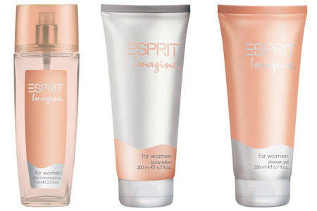 • Esprit Imagine for her. Цветочная композиция от парфюмера Veronique Nyberg (Вероник Найберг) построена на нотах мандарина, розового перца, валерианы, османтуса, нектарина и мускуса. Туалетная вода выходит во флаконах 15, 30 и 50 мл. Кроме того, можно ожидать шикарные продукты для тела: дезодорант-спрей, лосьон для тела, гель для душа, подарочный набор в специальном кофре.