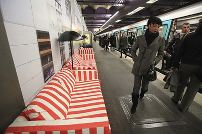 Если вы будете в Париже до 24 марта, такую красоту вы сможете увидеть на станциях Paris’ St. Lazare, Champs-Elysées Clémenceau, Concorde и Opéra. Идея очень красивая, хотя авторы проекта называют его «тест-драйвом», а если быть ещё точнее, то bum-тестом («bum» - задница).