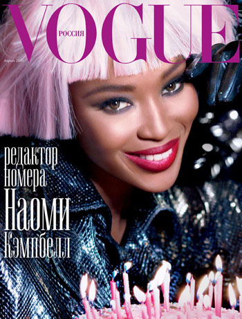 Российский глянец также отметился, по крайней мере, двумя красивейшими обложками. Намбер ван, естественно, Наоми, которая стала соредактором апрельского русского Вога.
