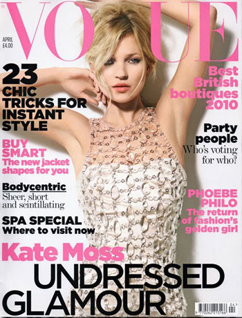 Вы думаете, что Кейт Мосс решила в апреле отдохнуть? Такого быть не может! Эта девушка может успевать всё одновременно: и съемки в кино, и вечеринки, и дефиле, и шутинги, и дизайн, и путешествия. Английский Vogue в апреле представил на обложке Кейт прям как невесту. А что, вдруг?