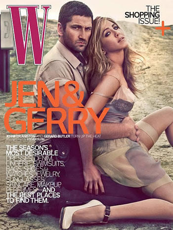 Если говорить об обложках как об арт-объектах, то тут я бы выделила три отличные апрельские работы: Кирстен Данст для журнала V – очень концептуальная вещь. Диана Крюгер для немецкого Vogue – решение с черно-белым фото, конечно, не новое, но сделано мастерски. Дженифер Анистон в компании с Геральдом Батлером для журнала W – великолепная съемка и работа стилистов.