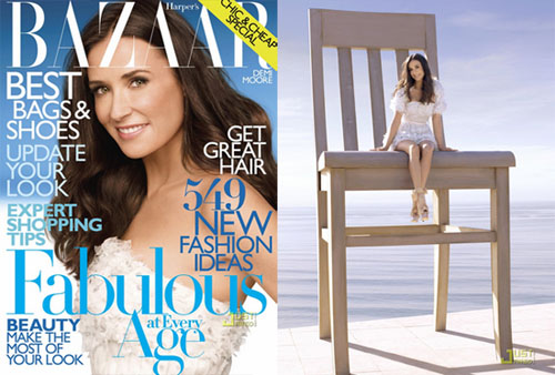 Если Бюндхен для меня – самая красивая обложка месяца, то Деми Мур – самая долгожданная. Потому что интересно: всё-таки Фотошоп или нет? Harpers Bazaar US готов раскрыть некоторые тайны Деми. Молодой муж актрисы и личное счастье, похоже, делают своё дело не хуже ретушёра. Хотя без хирургов тоже не обходится. Но всё равно, она очаровательна и по-настоящему украшает апрельскую обложку американского Базара.