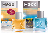 • Mexx First Sunshine Man – мужской аромат в ярко-голубом флаконе. Это также обновленный Mexx Man, теперь в его начальных нотах есть зеленое яблоко, в нотах «сердца» - корица, а в базовых нотах – яркий и теплый сандал. Аромат поступает в виде туалетной воды, в объемах 30 и 50 мл, сопровождает новинку – гель для душа.