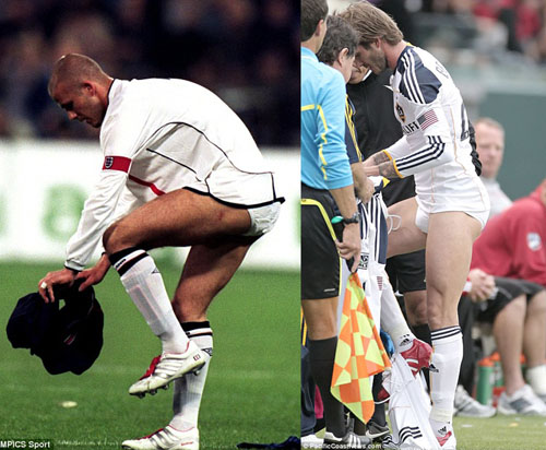 Ну, конечно, кому же, как не Дэвиду Бэкхему подхватить новую моду. Этот известный во всем мире метросексуал спокойно пользуется увлажняющими кремами для лица, следит за формой бровей, удаляет волосы с груди, а теперь ещё и демонстрирует гладко выбритые ноги.