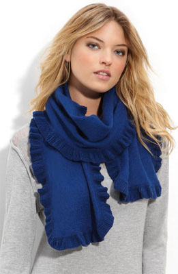 3. Если вместо привычной бахромы украсить шарф присборенной каймой, то выйдет очень женственный вариант.