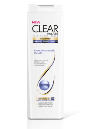 Шампунь CLEAR vita ABE для женщин с технологией Nutrium10 питает волосы и кожу головы витаминами и минералами, которые известны своим благотворным влиянием на состояние волос и кожи головы. Шампунь устраняет перхоть, сухость и зуд кожи головы (шампунь CLEAR vita ABE для женщин устраняет видимую перхоть и сопутствующие ей сухость и зуд при регулярном использовании). Новая формула CLEAR vita ABE для женщин облегчает укладку, делает волосы в 10 раз сильнее и после 2 недель его использования на 97% сокращается выпадение волос (шампунь CLEAR vita ABE для женщин по результатам теста на ломкость по сравнению с шампунем без кондиционирующих компонентов, Шанхай 2010).