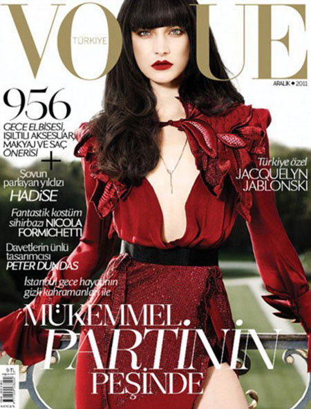 Модель Жаклин Яблонски осталась без бюста на обложке турецкого Vogue. Американская модель польского происхождения выглядит слишком плоской на фото. О ретуши также говорит разница в тоне кожи чуть ниже ключиц и на груди. Присмотритесь – явная граница цвета.
