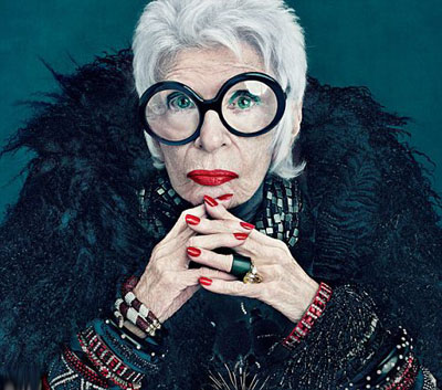 Айрис Апфель – известная американка, бизнес леди, дизайнер предметов интерьера и икона стиля. Родилась в 1921 году, но до сих пор считается одной из самых стильных женщин США. Компания MAC традиционно удивляет выбором новых лиц для сотрудничества, её косметику рекламировали эпатажные мужчины, лесбиянки и геи, а теперь появится и линия от 90-летней Iris Apfel.