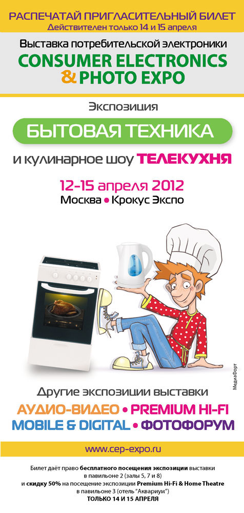 Спешите! Вы еще успеете зарегистрироваться и получить бесплатный пригласительный билет на посещение кулинарного шоу ТЕЛЕКУХНЯ и выставки Consumer Electronics & Photo Expo 2012!