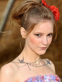 Популярность временных тату сейчас на пике. И всё благодаря Chanel. Помните коллекцию временных тату для тела сезона Весна-Лето 2010 от Chanel? Она буквально всколыхнула целую волну нового подхода к тату. Теперь есть тату для губ, для век – тату стали частью макияжа.