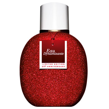 Юбилейный флакон покрыт красными блестками, подчеркивая оптимистичность аромата. Лимитированный юбилейный флакон Clarins Eau Dynamisante – новинка 2012 года, аромат в виде EDT (спрей).