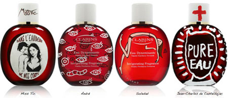 По случаю 25-го дня рождения легендарного аромата Clarins 25 дизайнеров и художников представили свои версии флакона, которые были выставлены в парижском бутике Colette в начале лета. Среди знаменитых имен: Жан-Шарль де Кастельбажак, Пьер Эрме, Матали Крассе, Клэр Корти-Кларинс, другие. Таким образом они высказали свое уважение бестселлеру Clarins Eau Dynamisante.
