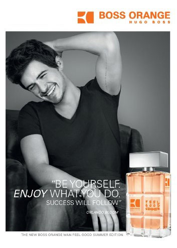 Hugo Boss представляет новинку сезона Лето-2013 – аромат Boss Orange for Men Feel Good Summer. Лицо аромата британский актер Орландо Блум. Его слова стали девизом для новинки: «Будь собой. Наслаждайся тем, что делаешь. И успех придет».
