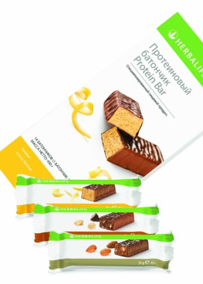 Протеиновые батончики от Herbalife – лакомство, которое помогает контролировать вес и сохранять стройность фигуры. В одном батончике всего 140 калорий и целых 10 г натурального белка, который незаменим для эффективного контроля веса и обеспечивает более длительное чувство сытости. К тому же Протеиновые батончики покрыты настоящим молочным шоколадом и представлены в трех великолепных вкусах – Ваниль-миндаль, Шоколад-арахис и Лимон.