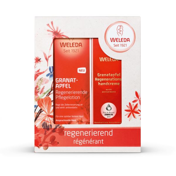 В набор входят Гранатовый восстанавливающий крем для рук и Гранатовое восстанавливающее молочко для тела.
