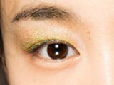 - M•A•C PRO 3D Brass Gold Glitter (в коллекции Fall 2014) – Несколько штрихов золотым глиттером, один в складку века, другой – вблизи линии роста ресниц. Разный нажим кисти создает воздушность и неравномерность распределения блесток.