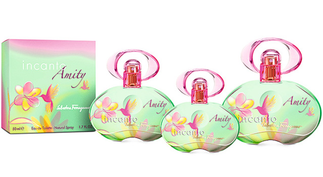 Salvatore Ferragamo в апреле 2014 выпустит новый цветочно-фруктовый аромат для женщин Incanto Amity. Incanto Amity - фланкер аромата 2003 года Incanto. Новинке предшествовали парфюмы Incanto Dream, Incanto Charms, Incanto Bliss, Incanto Bloom и Incanto Lovely Flower.