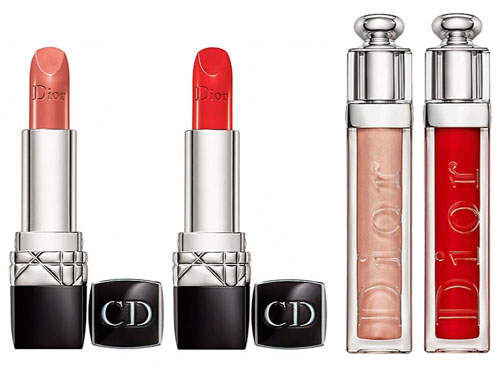 - Помада Rouge Dior Couture Colour & Voluptuous Care Lipstick. В двух оттенках: Sunrise (теплый розовый), Sunset (огненно-красный).
