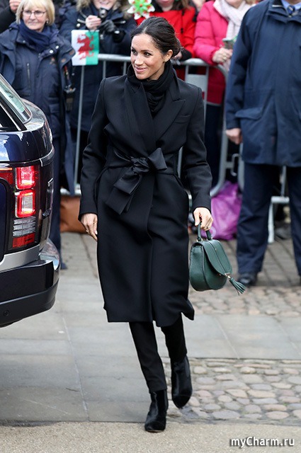 В Уэльс на культурный фестиваль Меган, которая распрощалась с актерской профессией и страничками в соцсетях (а также собственным блогом) ради принца Гарри, отправилась в элегантном пальтишке авторства Стеллы Маккартни. Что за брюки у Меган не уточняется, равно как и марка сапог. Зато сумочку модные критики опознали. Это DeMellier London.