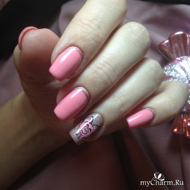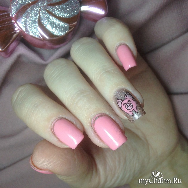 Хочу с вами поделиться своим маникюром в образе который непосредственно ассоциируется у меня с символом этого года, конечно же со свинкой)))