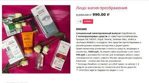 Доброго дня всем майчармелькам и гостям сайта!Сегодня покажу полученный "Лизабокс. Лицо: магия преображения". Цена его на сайте была 990, со скидкой обошелся в 891 рубль.