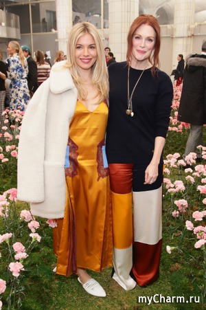 Знаменитые актрисы Джулианна Мур и Сиенна Миллер были замечены на показе новой коллекции Тори Берч.Коллекция состояла из ярких и цветочных нарядов. Так что знаменитые гостьи чудесно вписались в атмосферу показа.