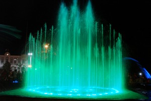 Вокруг него есть скамеечки, кафе, детская площадка, так что можно посидеть, послушать музыку и полюбоваться. К слову сказать, на бегущую воду, да еще в такт музыке, да к тому же и со светоэффектами, можно смотреть бесконечно.