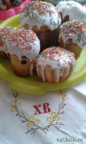 В этом году мы опробовали новый рецепт глазури для куличей. Раньше всегда делали белковую, но ее минус в том, что при разрезании она обсыпается. Поэтому в этот раз приготовили сахарную глазурь.Рецепт: