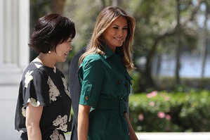 Продолжаем внимательно рассматривать новые образы Мелании Трамп, которая проводит время с гостями из Японии.В США с визитом прилетели премьер-министр Японии Синдзо Абэ и его супруга.