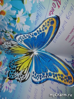 Сегодня прилетела ко мне еще одна радость. Это конвертик от Танюшки (Констатта). Это её фирменная ромашка-брошь и прекрасная открытка с бабочкойКогда открываешь открытку там объемная бабочка