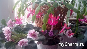 В этом году зимой у меня Декабрист или Рождественник зимой не цвел. Так, выпустил пару цветочков и все.Не то что в том году, весь усыпанный цветами был.