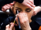 естественного макияжа, который подчеркивает всю сложность данного образа". Он был предназначен для того, чтобы сконцентрировать внимание на утонченных деталях и нововведениях в одежде. Кожа становится почти прозрачной, глаза выступают на первый план, губы слегка заметны. • Начните с теней розового металлического оттенка вдоль всего века. Добавьте более нейтрального металлического оттенка под уровень бровной кости и растушуйте пальцем.