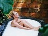 Еще один рецепт молочной ванны. Взять 3 литра 6% молока, 1 стакан жидкого меда, 1 стакан молочка овсяных хлопьев, 1 литр отвара шалфея, 1 литр отвара липового цвета, 1 стакан розовой воды, по 5 капель эфирных масел корицы, жасмина, иланг-иланга. Все ингредиенты растворить в воде.
