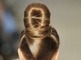 Вариант 2. Перекрученный пучок. Такой пучок можно было увидеть на показе модного дома Lorick. Важно помнить, что перед тем, как делать такую прическу, не стоит мыть волосы хотя бы 1 день (хороший вариант, когда голова грязная, а уже опаздываешь).