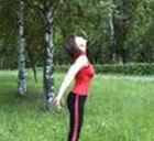 • Ноги вместе, руки раскинуть в стороны, медленно наклониться вперёд, как можно ниже, при этом лицо стараться тянуть вверх, зафиксироваться, затем, соединив руки впереди, постараться выгнуть спину вверх, при этом руками тянуться к полу.