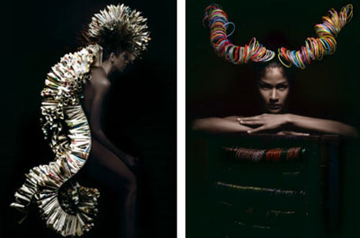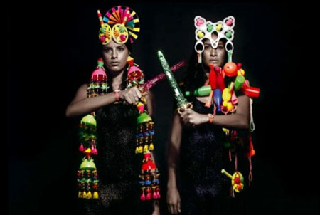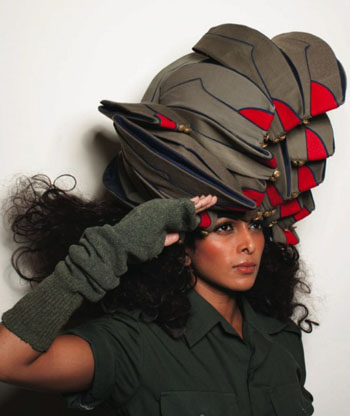 Стоит отметить и несколько странные варианты головных уборов. Например, сложенные в стопку с десяток черных бюстгальтеров, детские погремушки и цветные елочные украшения. Впрочем, на вкус и цвет, как говорится… Ведь Shilpa Chavan и критики и коллеги заслуженно считают талантливым дизайнером, подающим большие надежды. Многие ее работы – настоящая находка. Только модницам следует помнить, что большинство шляпок Shilpa Chavan нужно носить с пышными волосами: кудрями, начесом или гофре.