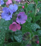 Само цветение медуницы очень интересно, потому как на одном растении одновременно находятся цветки разных цветов от розового до синего. При распускании цветки медуницы нежно-розового цвета, потом становятся лиловыми, малиновыми, затем фиолетовыми, а завядшие цветки имеют синий цвет. Смотришь на кисть медуницы и, кажется, что видишь целый букетик. Плод медуницы - четыре яйцевидных орешка в чашечке. Созревает в мае - июне.