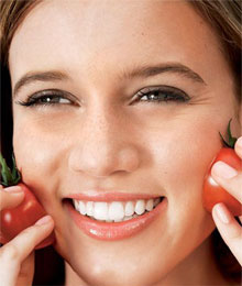 - Отбеливающая томатная маска. Помидоры нарезать ломтиками и уложить на лицо. Через 20 минут смыть водой комнатной температуры и нанести увлажняющий крем.