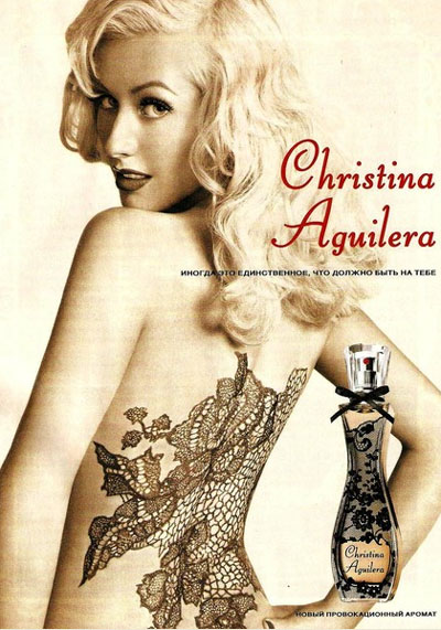 Для рекламы своей парфюмерии Кристина Агилера не приглашает топ-моделей, с этой миссией она прекрасно справляется сама. Кристина молода и привлекательна, ей нечего стесняться. На рекламных фотоснимках Кристина Агилера предстаёт в пикантных нарядах: шёлковое и кружевное бельё едва прикрывают наготу.
