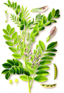 Солодка гладкая, солодка обыкновенная – Glycyrrhiza glabra L. – многолетнее травянистое растение из семейства бобовых. Мощная корневая система солодки залегает глубоко под землёй. Стебель прямой от 40 до 100см в высоту. Листья непарноперистые с яйцевидно-ланцетными листочками. Бледно-фиолетовые, мотыльковые цветки собраны в пазушные, густые, но рыхлые кисти. Цветёт солодка в июне-августе. Плоды бурые удлинённые, слегка изогнутые голые бобы с 2-6 семенами. Зеленовато-серые или буроватые семена напоминают блестящие почки.