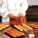 Силиконовые формы – не только удел использования в домашнем хозяйстве. Прекрасно подобная посуда зарекомендовала себя в хлебопекарной и кондитерской промышленности.Кроме силиконовых форм для выпечки в продаже имеются силиконовые лопатки, ножи, кулинарные кисточки, крышки, подставки под горячее и поглотители шума и вибрации.