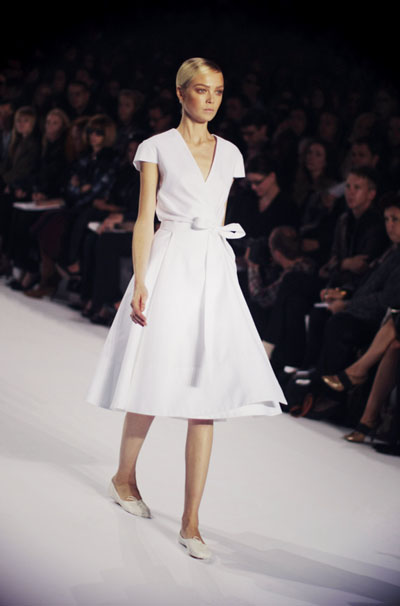 В своей коллекции Хана МакДжибон представила зрителям квинтэссенцию женственности - образ девушки-балерины в атласных или кожаных (удобных!) балетках и легком платье, развевающемся на ветру, чья длина и силуэт призваны скрыть все возможные недостатки, оставляя место только прекрасному.