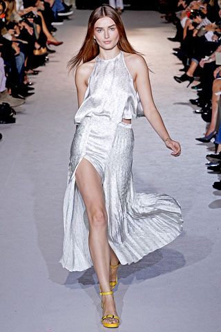 Коллекция Стеллы Маккартни, казалось, вдохновлена образом современной женщины – независимой и спонтанной. Светлые деловые костюмы, струящиеся соблазнительные платья и туники и игривый рисунок некоторых моделей – кокетство и уверенность в себе, талантливо смешанные в один модный весенний коктейль.